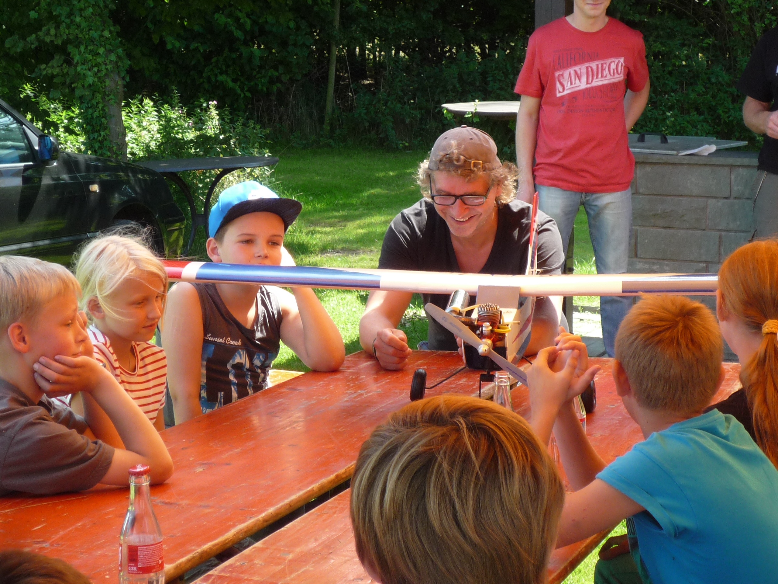 Viel Spaß beim Erklären eines Modellflugzeuges hatten Klaus Brettner und seine interessierten Zuhörer