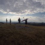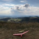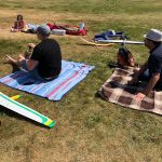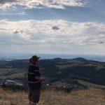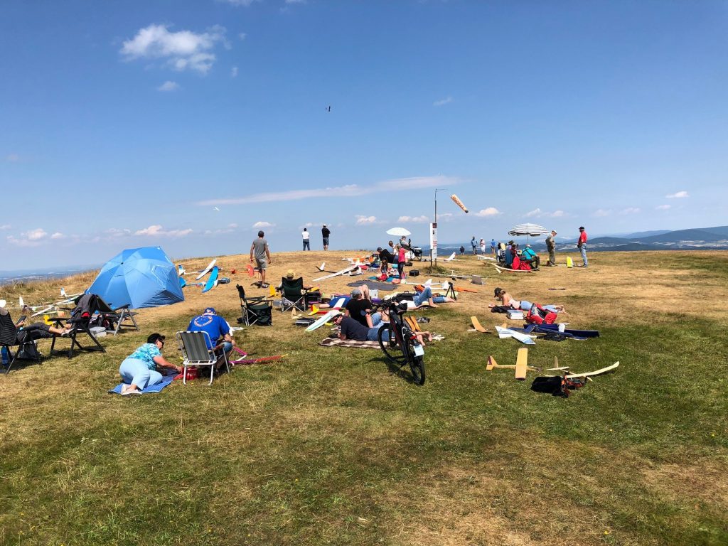Morgens wurden dann nach dem gemeinsamen Frühstück der Tag geplant, welcher Startplatz und welche Windrichtung ist die Frage, denn die meist motorlosen Segelflugmodelle fliegen nur mit Hilfe von Hangaufwind und Thermik. Windrichtung Südwest war angesagt, also der Startplatz Abtsrodaer Kuppe, hier gibt es auch einen kleinen Freizeitpark mit Klettergarten und Sommerrodelbahn, das alljährliche Kinderprogramm!