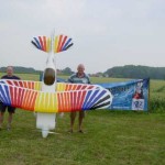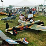 Jagdflugzeuge: “ME109 E” Spannweite 3,30 m von Jochen Hülsmann. Bomber: “B17” mit 3,60 m und 4 Motoren von Dirk Bayer und das größten Modell am Platz die “Avro Lancaster” ein Bomber mit 4,42 m Spannweite und vier 25 ccm Motoren von Peter Wolf aus Dortmund: